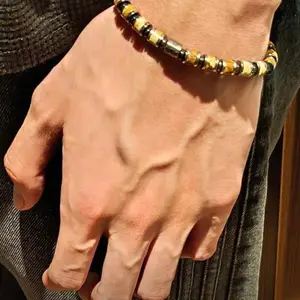 Titanium Steel Quartz Stone Bracelet, Picture Stone Bracelet for Men and Women, Niche Design, High-End Feel, Popular Fashion Accessory 6mm