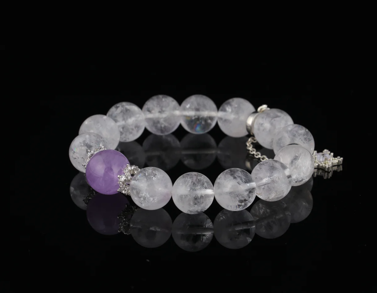 Natural Amethyst Bracelet Birthday Customization White Flash Energy Stone Essential for Attracting Wealth, Aiding Sleep, and Changing Luck