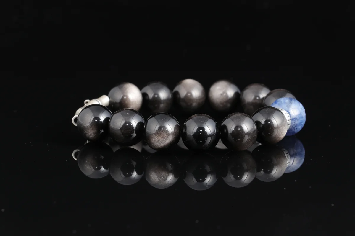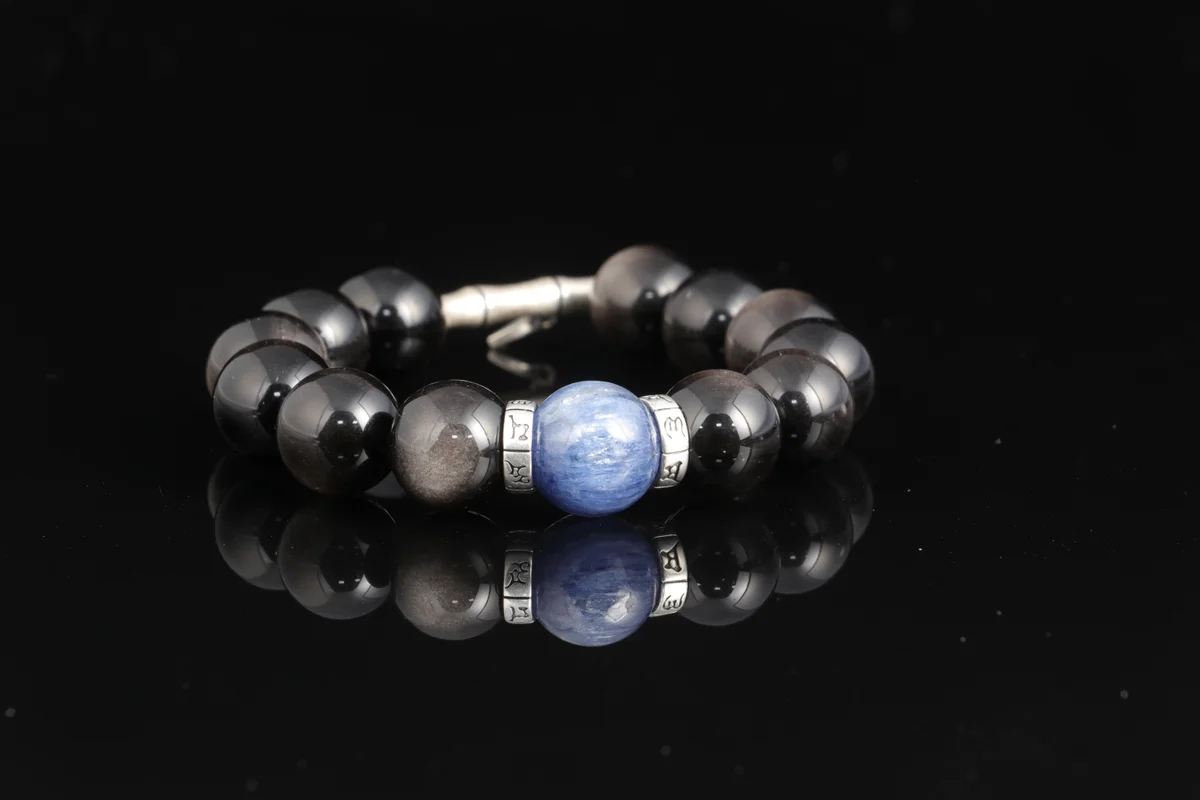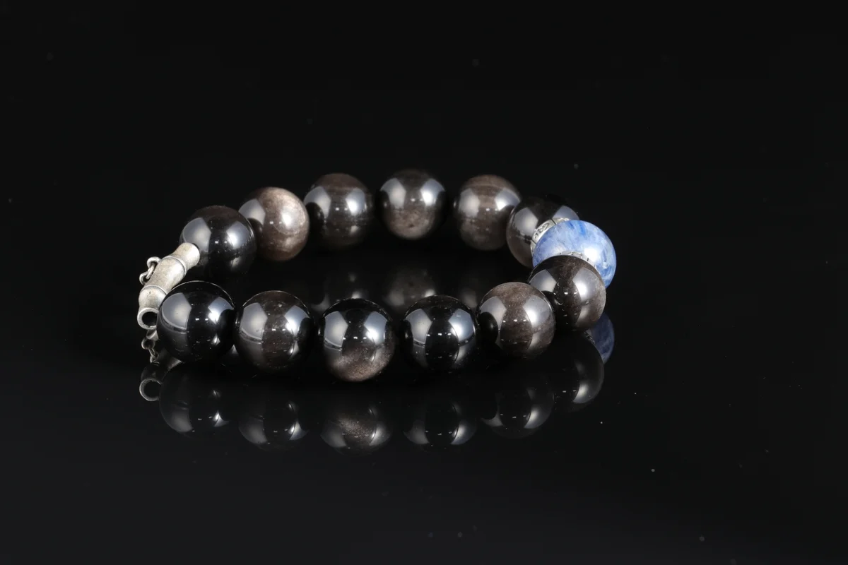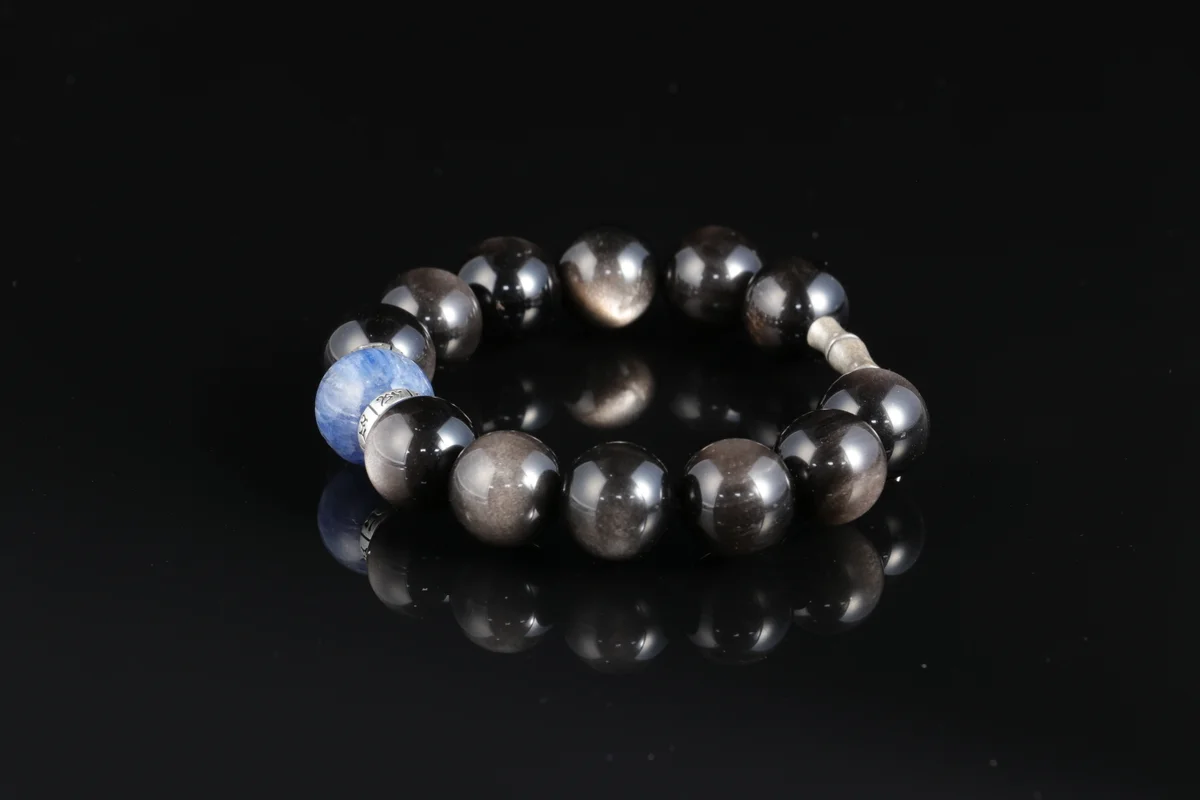 Natural Silver Sheen Obsidian Aquamarine Bracelet, Customized for Birthdate, Wealth-Attracting and Evil-Warding Energy Crystal Bracelet for Gift or Personal Use