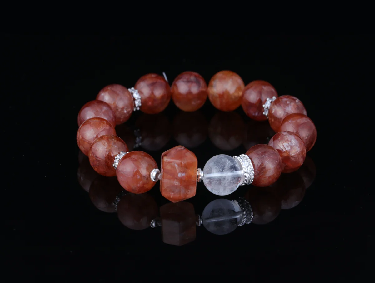 -32%Natural Red Phantom White Crystal Bracelet | Five Elements Gold and Fire Energy Replenishment Bracelet | Customized Fortune Bead Strand Based on Astrology