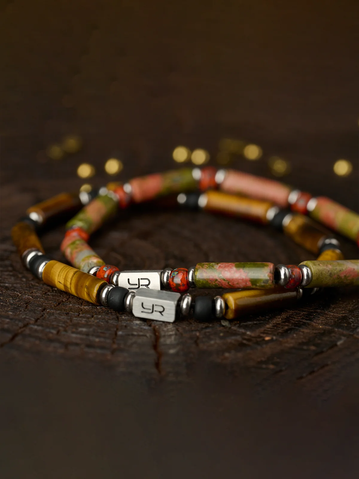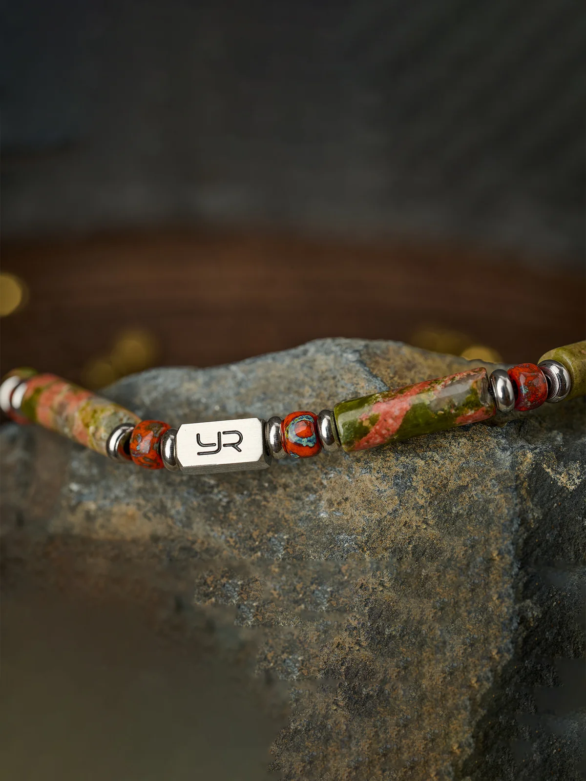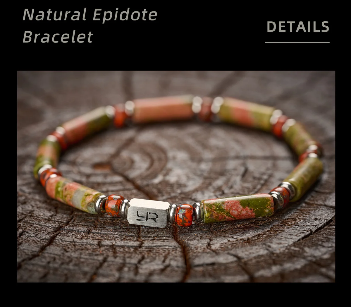 Anxiety-relieving Retro Floral Green Stone Niche Handmade Men's Bracelet
