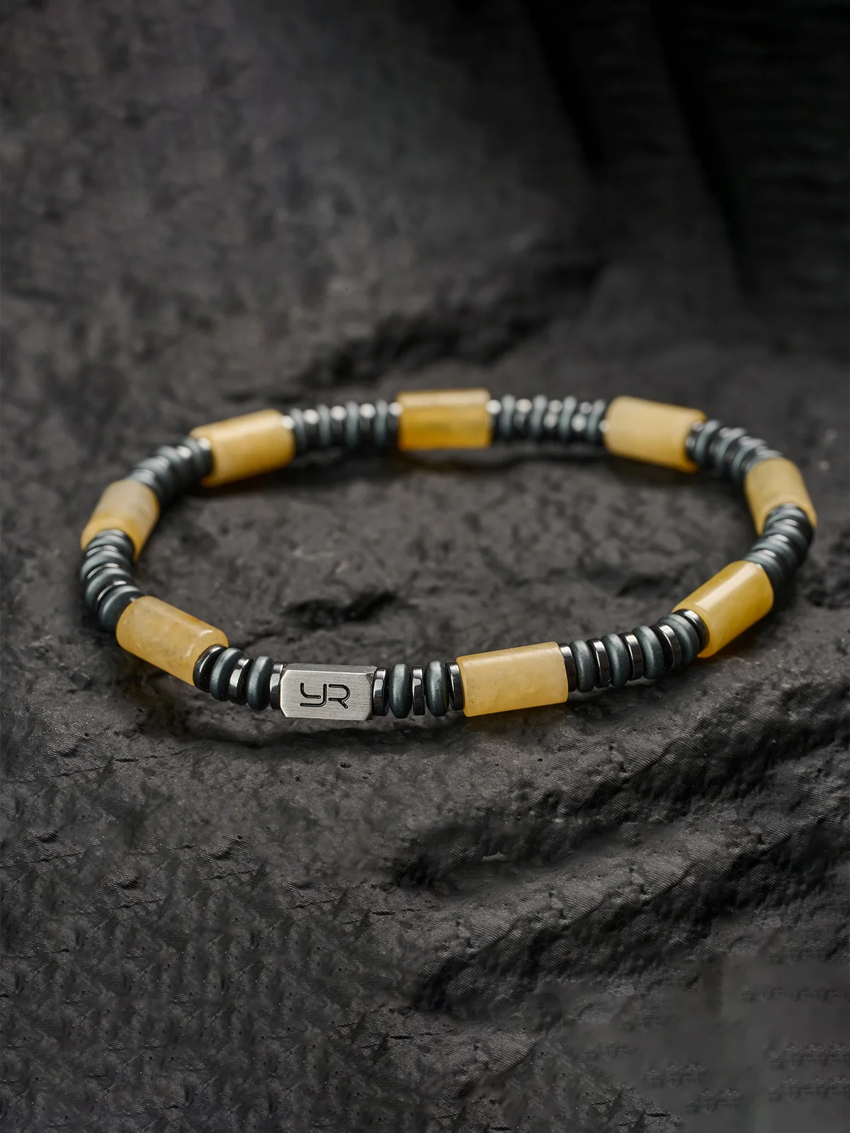 Men's Bracelet Natural Yellow Jade Stone Color Bead Strand, Niche Fashion Men's Niche Bead Strand