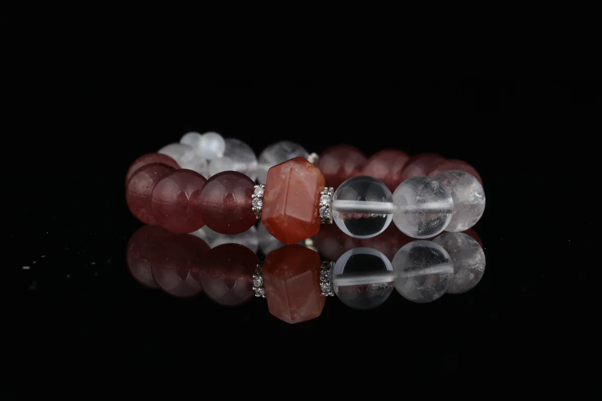 celet suitable for? Answer: This bracelet is suitable for individuals looking to improve interpersonal relationships, attract positive romantic connections, or enhance workplace social interactions. As a product categorized under calming crystals and love crystals, it is particularly ideal for users seeking emotional support, boosting personal charm, or purifying negative energy. Strawberry Quartz corresponds to the heart chakra, enhancing approachability, while Clear Quartz amplifies positive frequencies. Therefore, it is also suitable for daily wear to gently brighten the complexion and protect one's aura. Regardless of gender, anyone wishing to attract wealth, good fortune, and enhance personal connections may consider wearing it.
