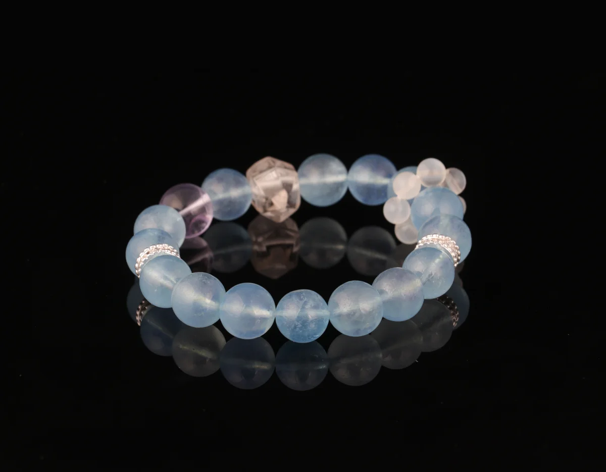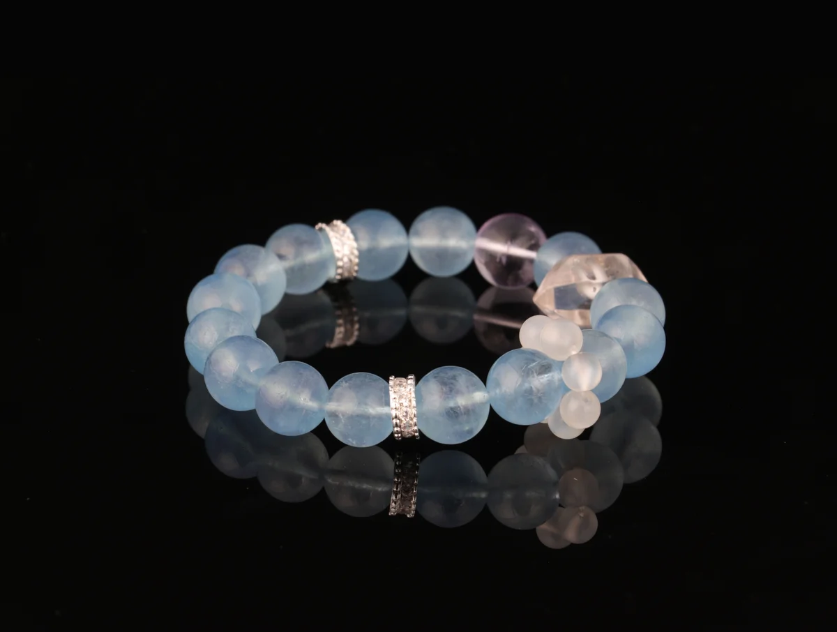 Natural Aquamarine Amethyst Clear Quartz Bracelet Energy Bracelet for Wealth Attraction, Sleep Aid, Evil Warding, and Luck Enhancement