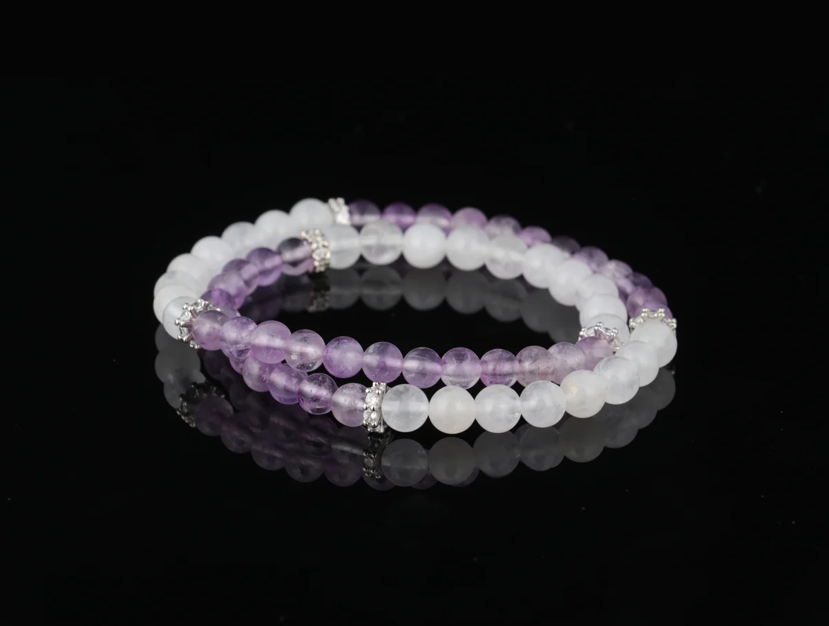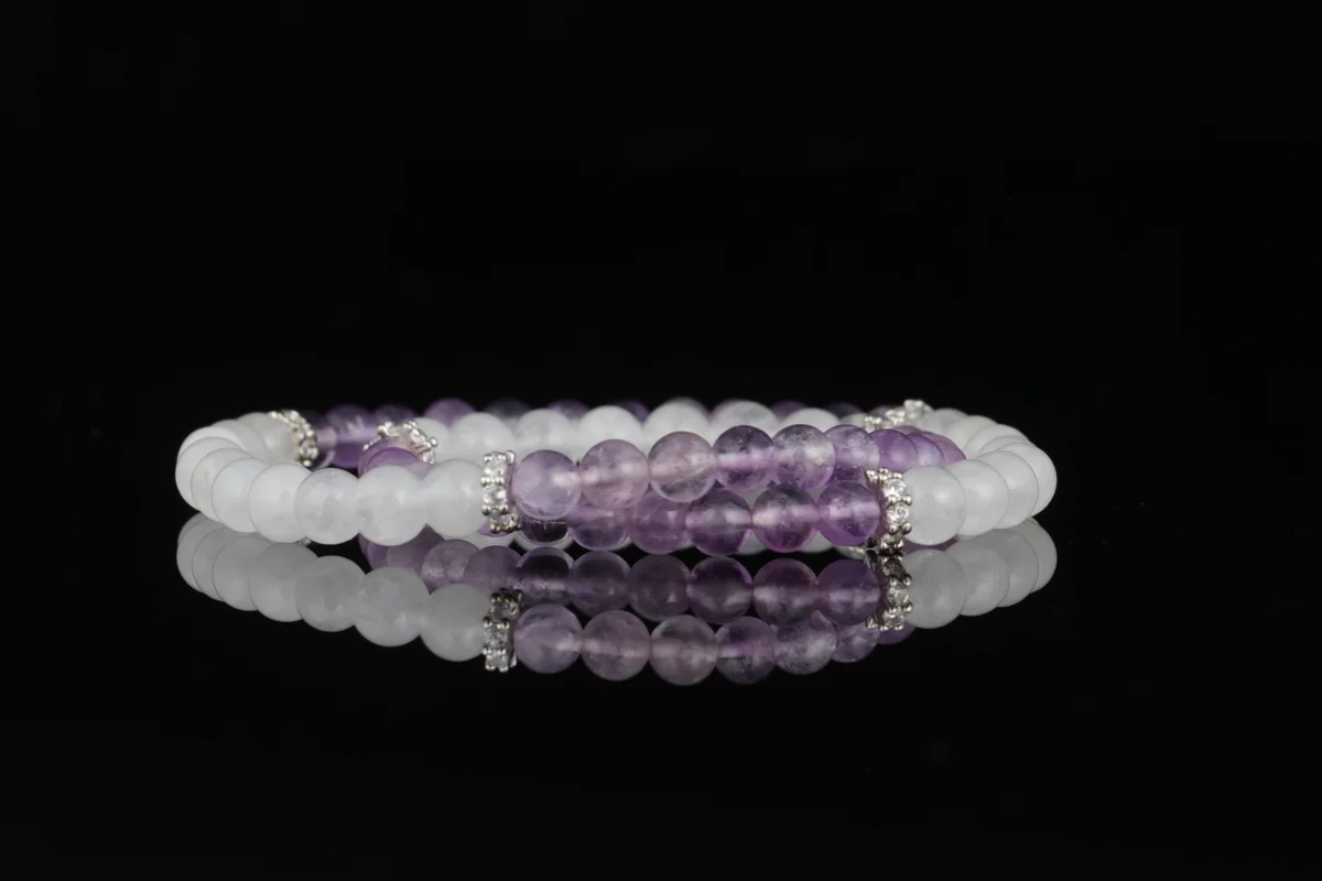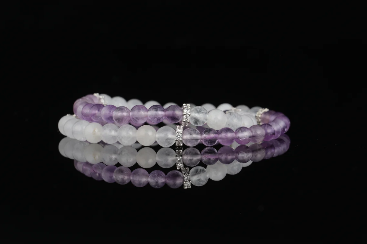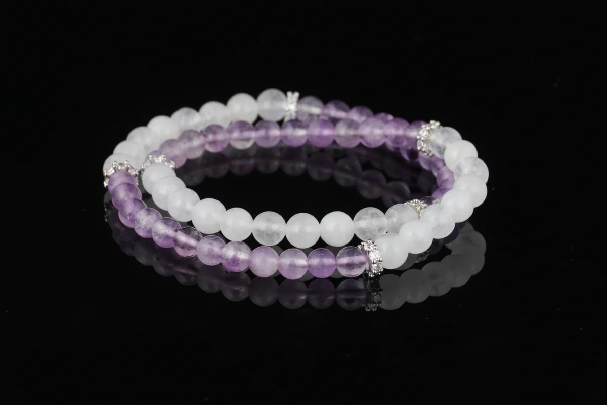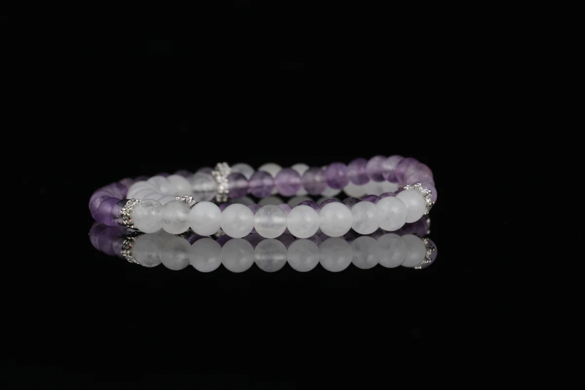 Natural Amethyst and White Azeztulite Bracelet Stackable Energy Manifestation Bracelet Wealth Attraction, Luck Enhancement, and Sleep Aid Natural Crystal