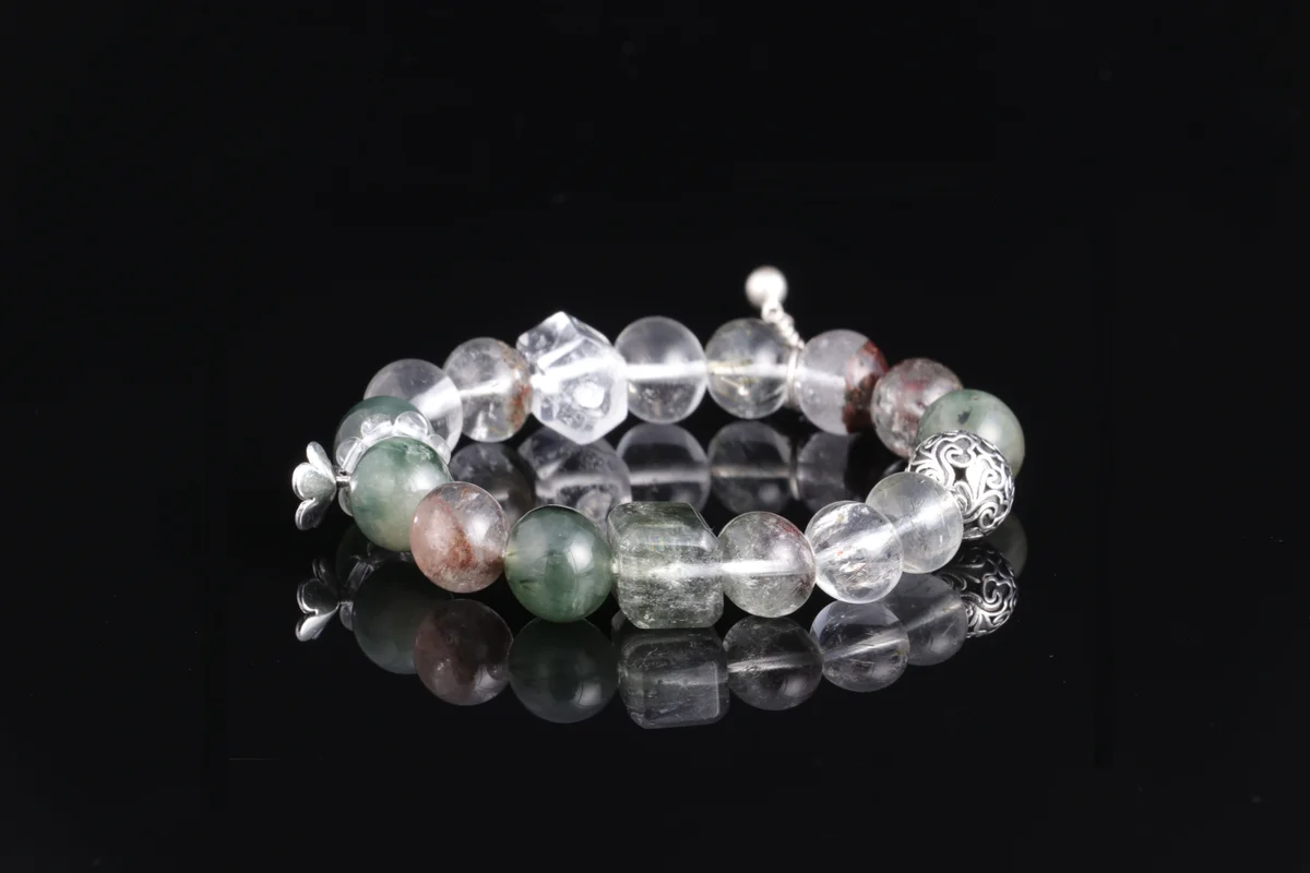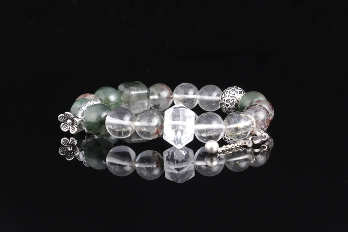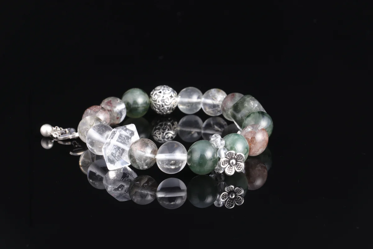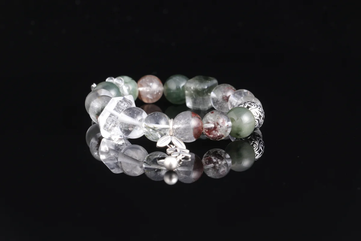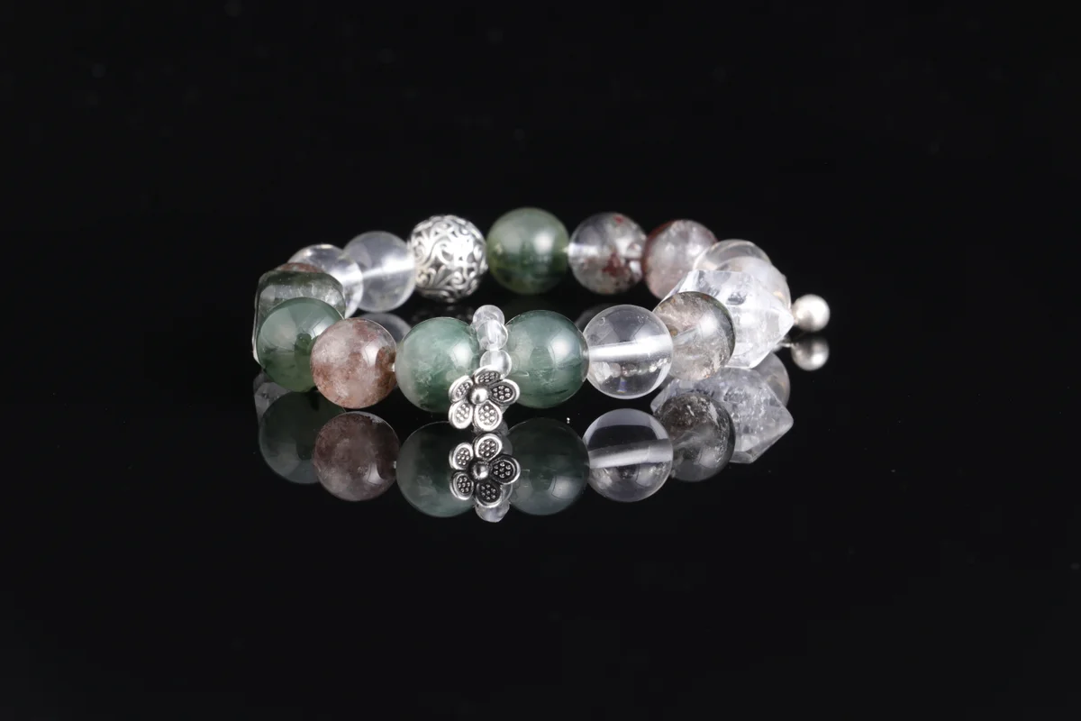 Natural White Crystal Green Phantom Green Tourmaline Bracelet | Customized by Birth Five Elements | Wealth and Career Energy Bracelet
