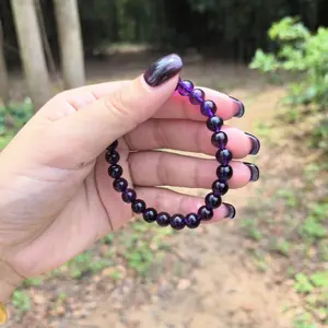t are the characteristics of the bracelet's material and origin? Answer: According to the product description, this bracelet is crafted from natural amethyst sourced from Brazilian mines. Each crystal features natural inclusions, which are imprints of the earth, attesting to the gemstone's natural origin and uniqueness. Due to limited mining, each piece is relatively precious, and acquiring one means owning something exclusive. This natural material ensures the purity and effectiveness of its energy, distinguishing it from synthetic crystals.