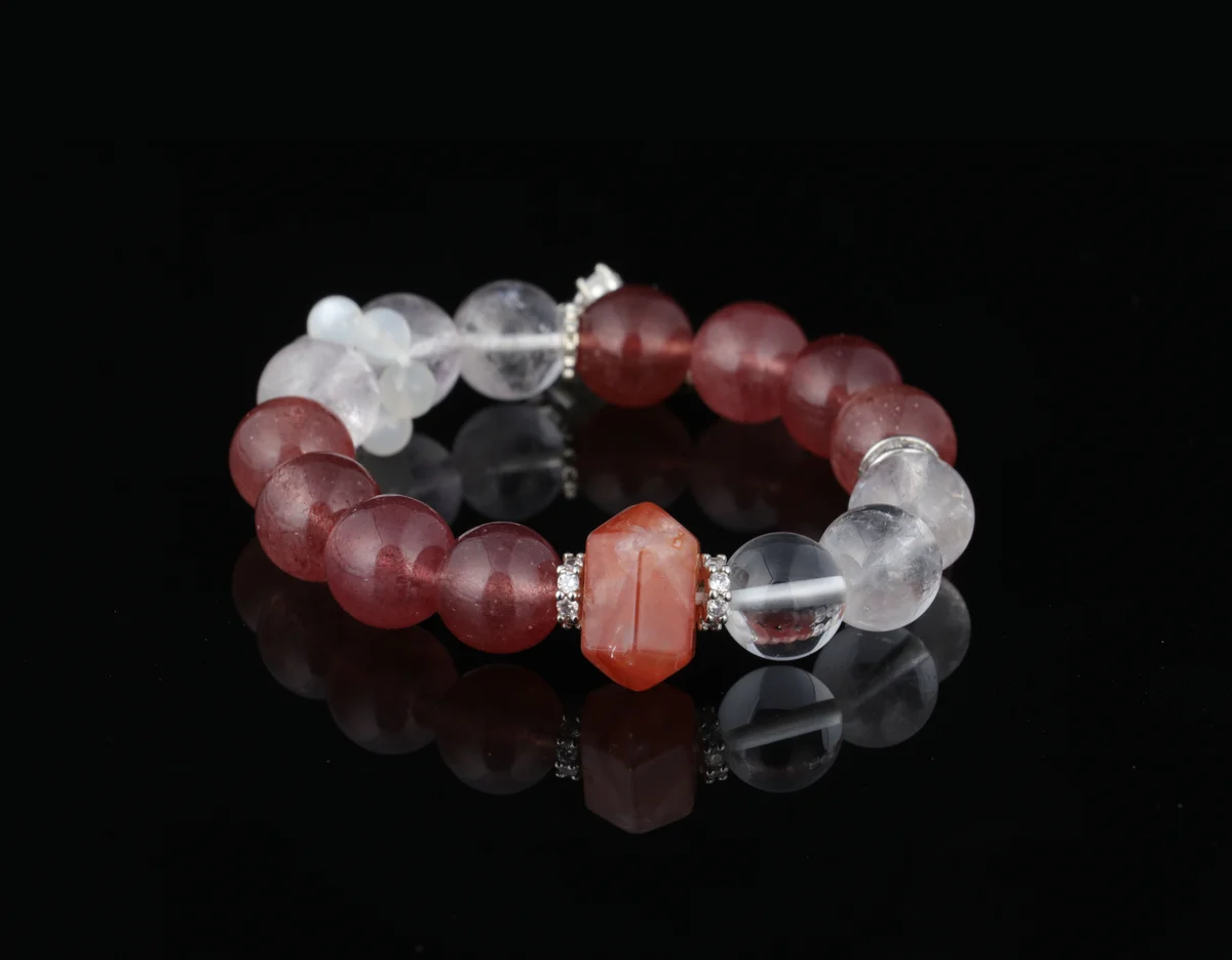 -24%Strawberry Quartz and Clear Crystal Bracelet | Custom Natural Energy Stone Birthstone | Peach Blossom and Popularity Boosting Bracelet