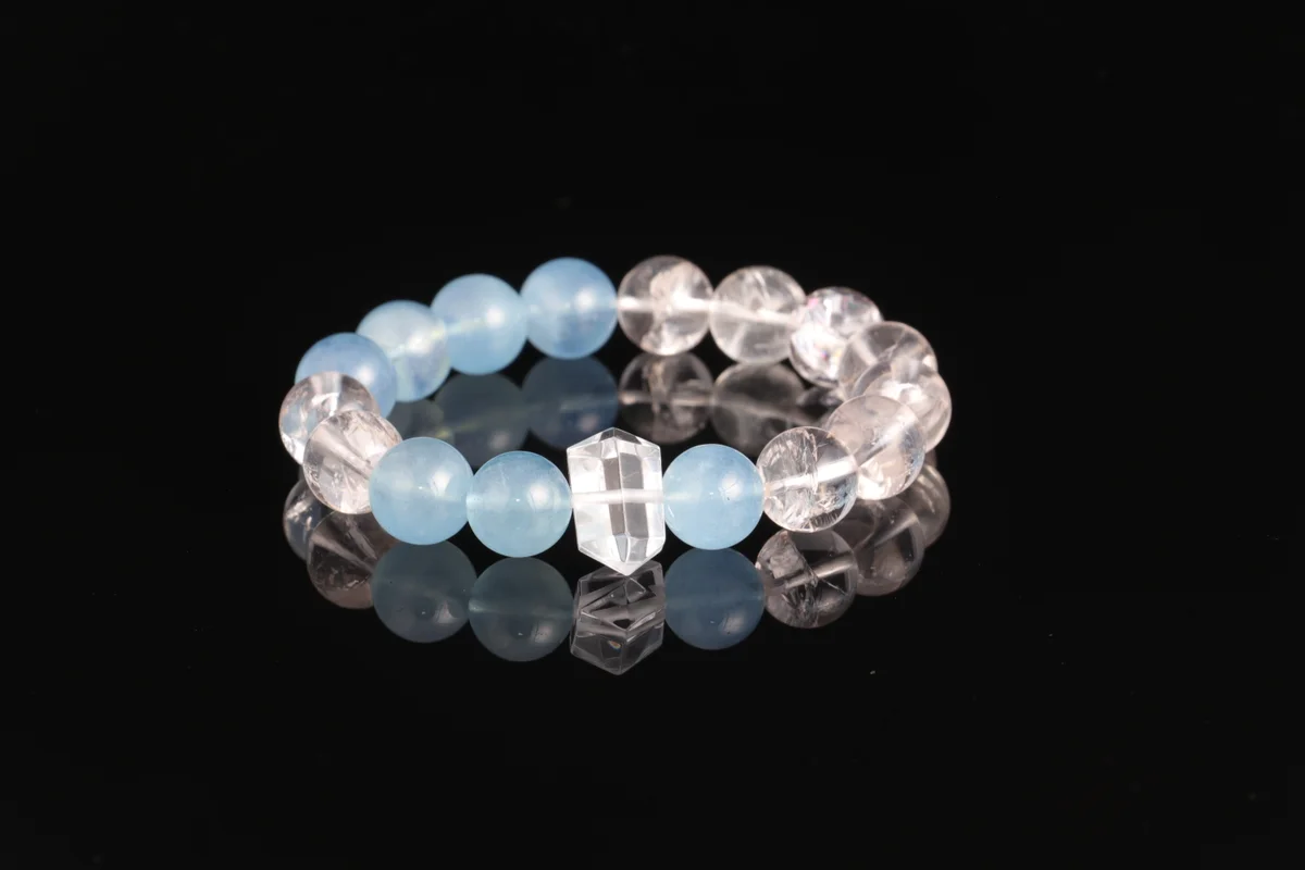 -27%Natural Aquamarine White Crystal Bracelet Birthstone Custom Energy Bracelet for Gift or Personal Use