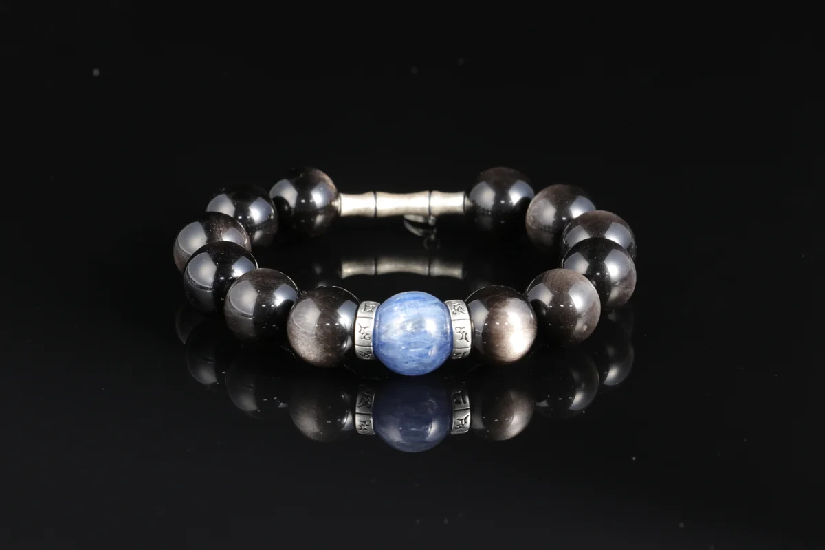 -27%Natural Silver Sheen Obsidian Aquamarine Bracelet, Customized for Birthdate, Wealth-Attracting and Evil-Warding Energy Crystal Bracelet for Gift or Personal Use