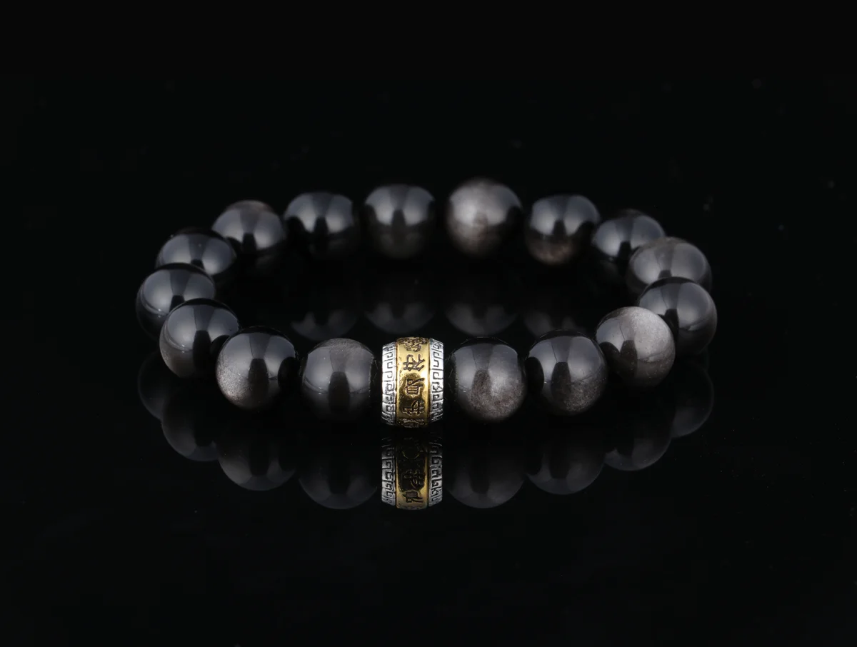 -32%Natural Obsidian Bracelet with Swirl Silver Custom Birthstone Energy Bracelet Wealth Attracting Evil Warding Luck Changing Bead