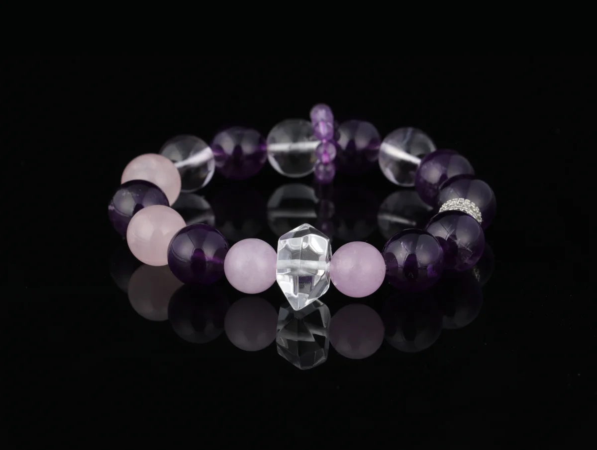 -25%Natural Amethyst & Rose Quartz Birthstone Bracelet Customized for Wealth, Luck, Sleep Aid, and Stress Relief Energy Crystal Bracelet