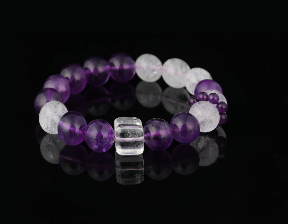 -35%Purple Mica and Clear Quartz Bracelet Natural Energy Stone for Wealth Attraction and Luck Customized by Birth Date for Gift or Personal Use